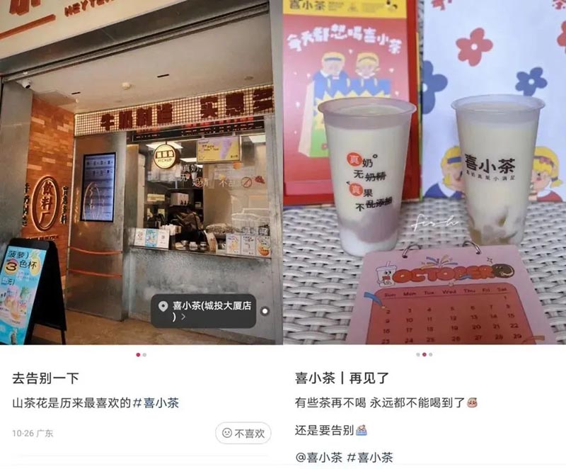 · 喜茶此前推出的平價(jià)子品牌“喜小茶”,也在前年年底關(guān)掉了最后一家門店;