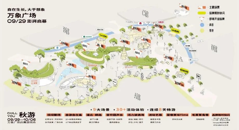在萬象廣場(chǎng)亮相之際,成都萬象城打造了「秋游 CHILL YOU」廣場(chǎng)游園會(huì),帶來9大場(chǎng)景、20+好物展位、30+活動(dòng)體驗(yàn)、連續(xù)8天的夢(mèng)幻暢游,每個(gè)空間承載不同內(nèi)容,啟幕首日吸引客流超19萬人次。