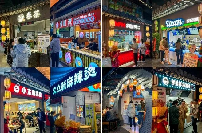 與復(fù)古宋朝市井生活場(chǎng)景形成有趣反差的是,這里大膽引入眾多特色創(chuàng)新品牌,豐富了商業(yè)項(xiàng)目的就餐選擇和體驗(yàn),包括湖南擂辣椒飯【擂飯】、【小木屋拌飯】、【港町灣關(guān)東煮】、河南本土gelato冰激凌【極拉圖】、新式飲品【椰不二】、回轉(zhuǎn)小火鍋品牌【串士多】、成都知名小吃【芙蓉巷】、【大吉利潮汕牛肉火鍋】……一舉成為鄭州頂流覓食、社交地。