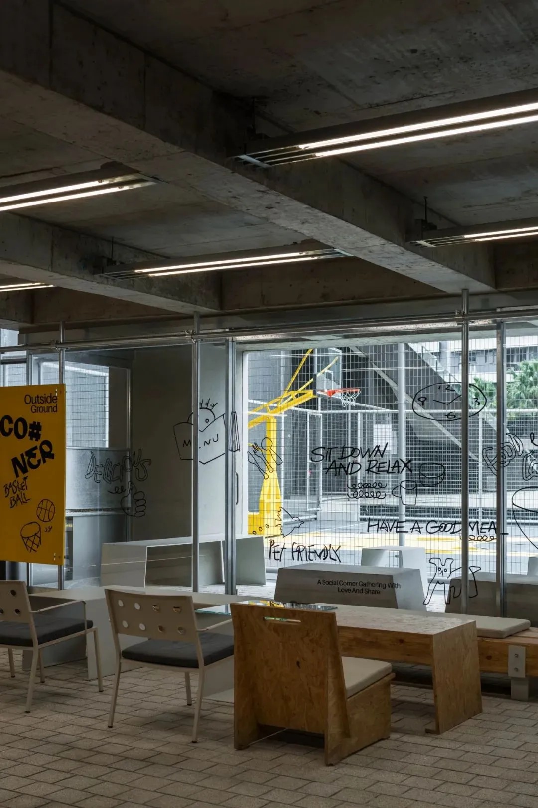 CO#NER食堂,以禁欲系冷淡風(fēng)為主旋律,設(shè)計上承襲了極致輕工業(yè)的時尚美學(xué),細(xì)膩而不失格調(diào)。其獨特的售賣模式圍繞模塊化“檔口”展開,融合POP UP快閃店概念,營造出既持續(xù)又多變的用餐氛圍,旨在為顧客解鎖無限可能的美食探索之旅。空間內(nèi),水泥原色與暖木色家具巧妙碰撞,輔以生動活潑的簡筆插畫,色彩斑斕間傳遞出溫馨舒適的放松信號,讓人在享受美食的同時,也能感受到心靈的慰藉。