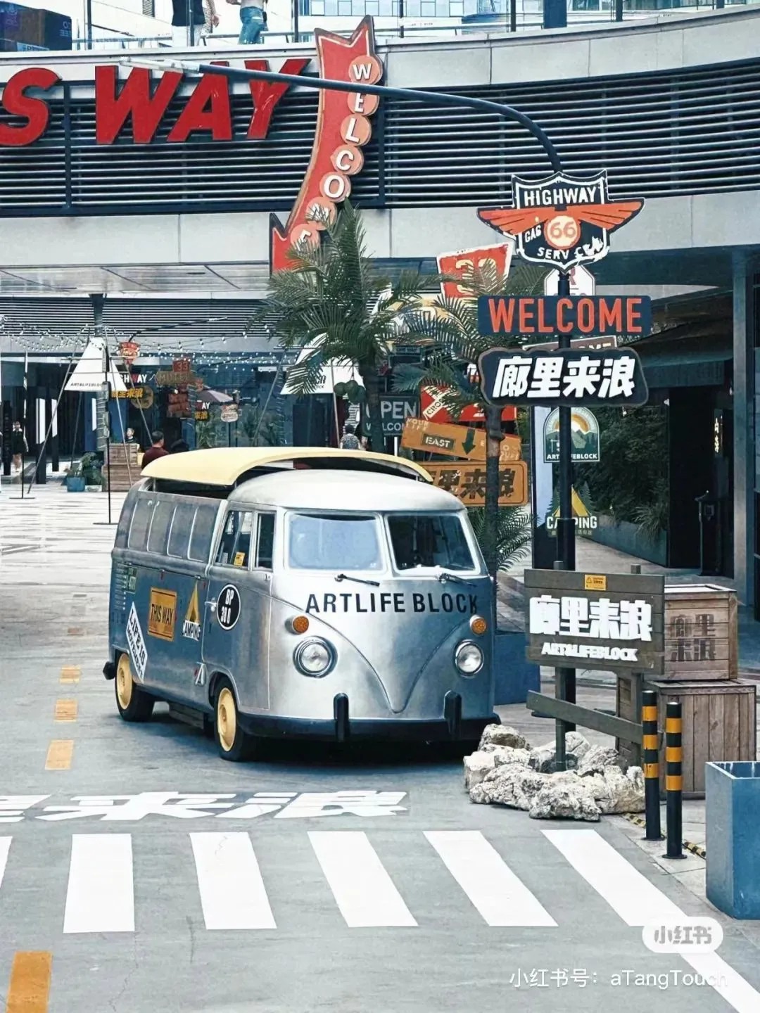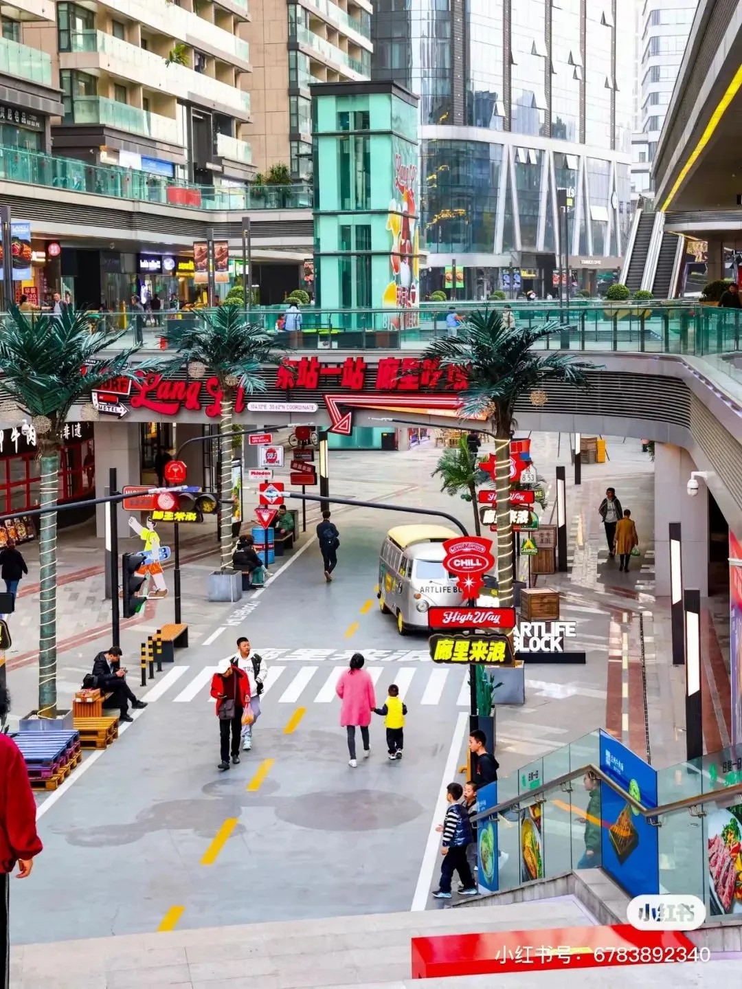 街區(qū)核心的下沉式廣場,匠心獨運,以美式公路風(fēng)情為藍(lán)本,巧妙融合異域風(fēng)韻與休閑度假氣息,不僅設(shè)計獨樹一幟,更成攝影打卡新寵,讓人仿佛穿越時空,瞬間切換場景,領(lǐng)略多元文化的魅力。此舉不僅巧妙解決了傳統(tǒng)商業(yè)下沉空間引流之困,更為其注入了勃勃生機與無限可能。