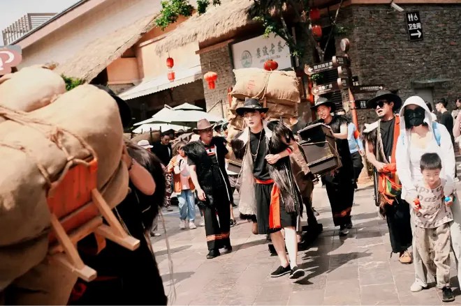 在傳統(tǒng)文化挖掘方面,以舜帝廟頌揚(yáng)“孝舜文化”,金家大院戲臺(tái)再現(xiàn)濟(jì)南“曲山藝海”盛世景象,每日進(jìn)行的京劇演出讓?xiě)蚯幕谌虢謪^(qū)氛圍、孟洛川旗袍及非遺展銷(xiāo)中心等工藝品店再次引領(lǐng)中國(guó)傳統(tǒng)匠人精神新高度。“漢式婚典”“拜月儀式”“祭舜大典”等傳統(tǒng)儀式,為數(shù)以萬(wàn)計(jì)的游客呈現(xiàn)傳統(tǒng)國(guó)學(xué)文化的瑰寶。