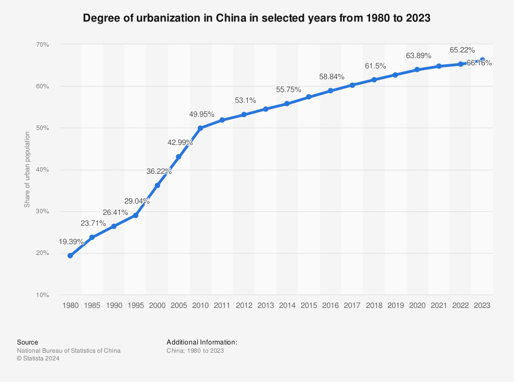 報告中顯示,2023年末,我國城鎮(zhèn)常住人口已經(jīng)達(dá)到了9.3億,城鎮(zhèn)化率66.16%,即,每三個中國人中,有兩個生活在城市里。此外,我國地級以上城市常住人口達(dá)到6.7億人,常住人口超過500萬的城市有29個。
