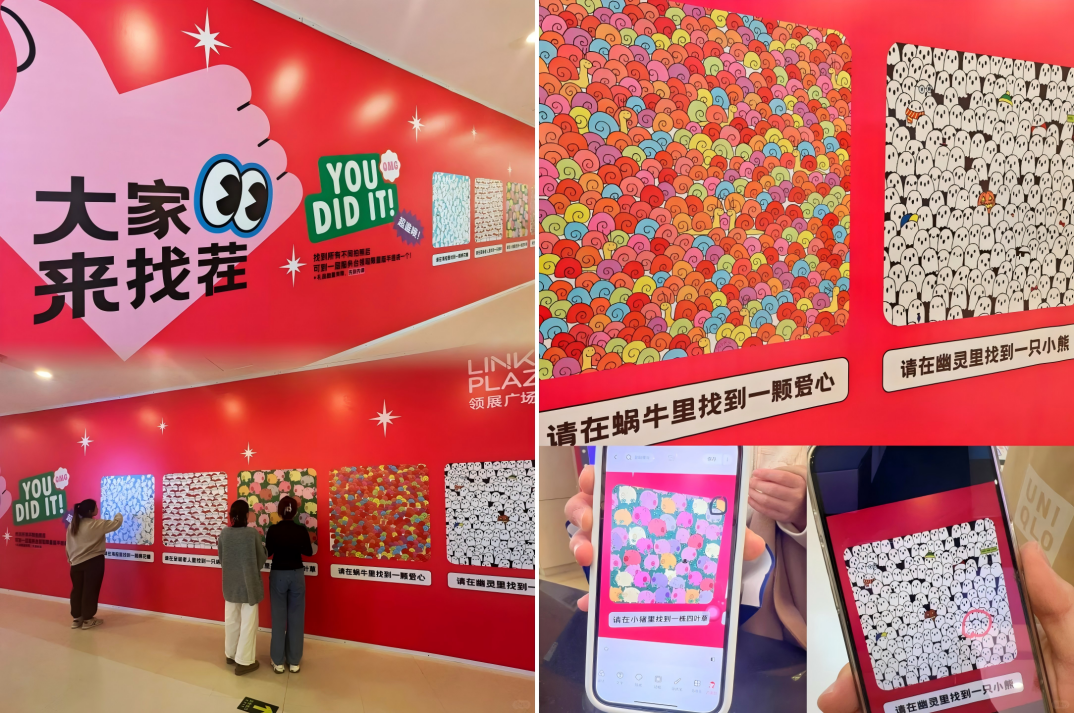 在小場(chǎng)景當(dāng)中,一個(gè)有意思的圍擋都能制造起購(gòu)物中心與消費(fèi)者、消費(fèi)者與消費(fèi)者之間的隨機(jī)鏈接。北京中關(guān)村領(lǐng)展廣場(chǎng)將圍擋設(shè)計(jì)成“大家來(lái)找茬”活動(dòng),消費(fèi)者從購(gòu)物中心“出其不意的小心思”里,找到了逛街帶來(lái)的驚喜。