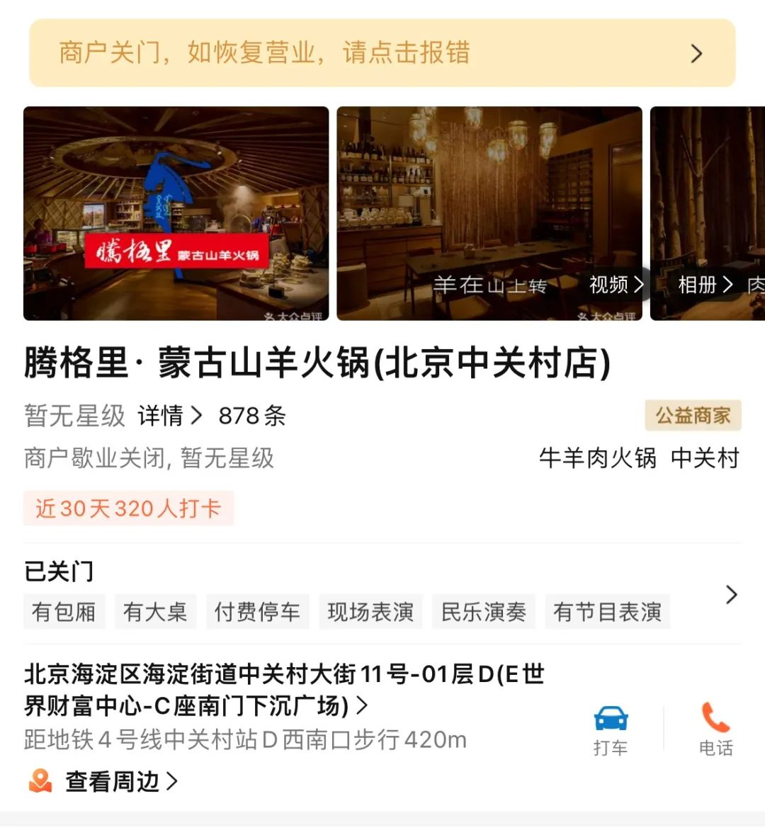 據(jù)大眾點(diǎn)評(píng)最新信息顯示,西貝餐飲集團(tuán)在北京中關(guān)村高調(diào)推出的子品牌“騰格里蒙古山羊火鍋”全國(guó)首店已歇業(yè)關(guān)閉。這家曾以現(xiàn)熬羊骨湯、內(nèi)蒙古二狼山白絨山羊肉為主打賣點(diǎn),開(kāi)業(yè)首月即登頂區(qū)域火鍋熱門榜的餐廳,在運(yùn)營(yíng)不足半年黯然退場(chǎng)。