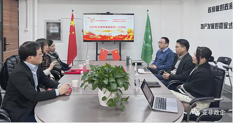 2022年2月17日,奧特萊斯(中國(guó))助理總裁、奧特萊斯產(chǎn)業(yè)發(fā)展委員會(huì)秘書長(zhǎng)馬弢、研究中心主任陳壽彭等一行蒞臨亞非絲路,並與我會(huì)副會(huì)長(zhǎng)兼秘書長(zhǎng)、亞非絲路商務(wù)中心常務(wù)副主任、絲路國(guó)家館館長(zhǎng)楊志慧、我會(huì)執(zhí)行秘書長(zhǎng)姜麗娜、副秘書長(zhǎng)兼絲路國(guó)家館副館長(zhǎng)顧偉業(yè)進(jìn)行友好互訪商洽,並達(dá)成多項(xiàng)戰(zhàn)略合作共識(shí)。